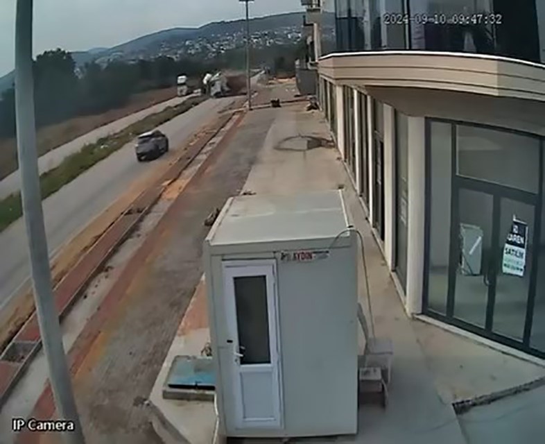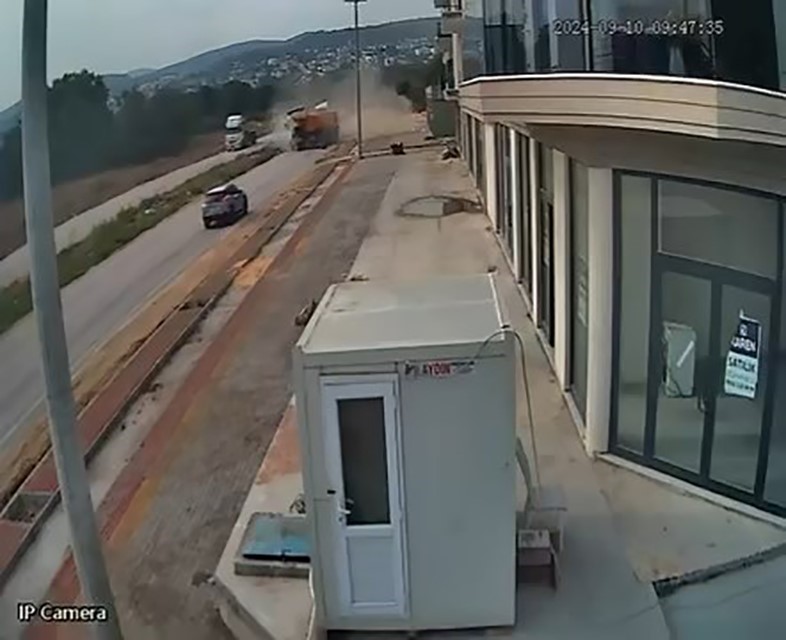 BURSA’DA TRAFİK KURALLARINA UYMAYAN KAMYON SÜRÜCÜLERİ, KAFA KAFAYA ÇARPIŞTI. ÇARPIŞMA ANI İSE SANİYE SANİYE VATANDAŞIN CEP TELEFONU KAMERASINA YANSIDI.