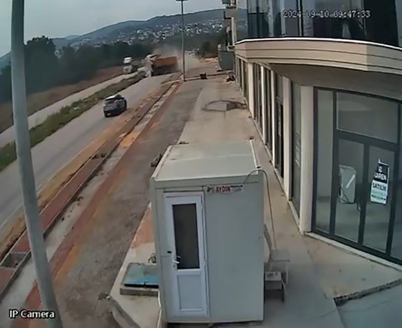 Kaza, merkez Nilüfer ilçesi Kayapa Mahallesinde meydana geldi. Edinilen bilgiye göre, inşaat molozu taşıyan kamyonlar, dönüş yolunda hızlarını biraz arttırıyor. Dikkatsizlikleri sonucu farklı yollardan yan yana giden kamyonlardan biri, diğer yola geçmek isteyince olanlar oldu. Kamyonun yola çıkmasıyla diğer kamyonla çarpışması bir oldu. Kamyonların çarpışmasıyla ortalık doza dumana karıştı. Kamyonların ters yönünden gelen otomobilin ise, saniyelerle kazaya karışmaktan kurtulması dikkatlerden kaçmadı.