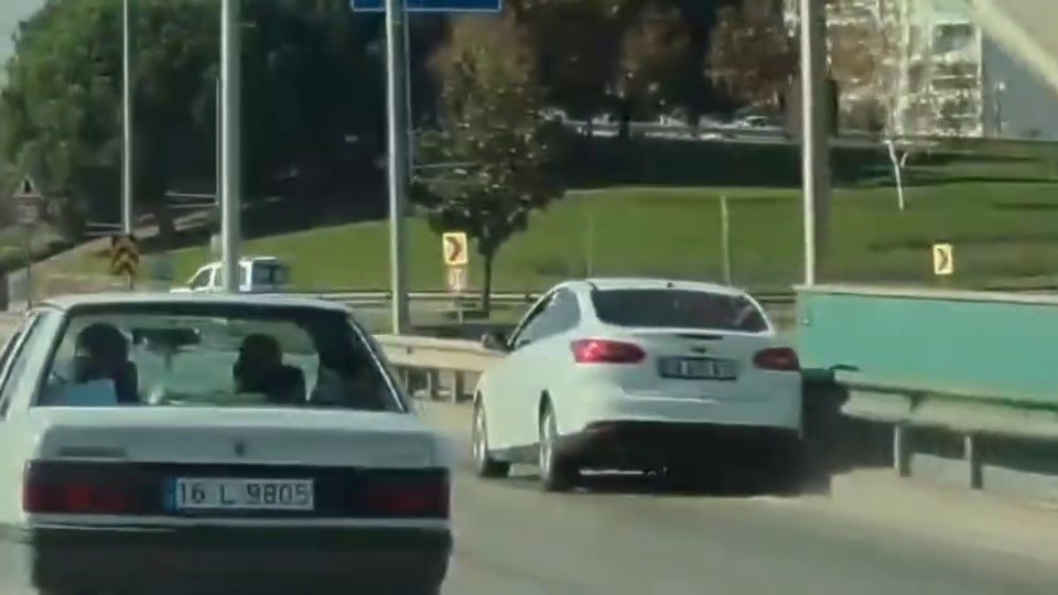 Olay, Bursa’nın Nilüfer ilçesi Küçüksanayi mevkisi İzmir Yolu üzerinde yaşandı. İddiaya göre, aracıyla seyir halindeki bir sürücü yoğun trafikte direksiyon başında fenalaştı. Otomobilin hakimiyetini kaybeden sürücü bir sağa bir sola çarptı. Bariyerlere çarparak metrelerce ilerleyen sürücü trafikteki diğer sürücülerin kamerasına yansırken, sürücü yaklaşık 150 metre ilerledikten sonra durabildi. Polis, olayla ilgili tahkikat başlattı.