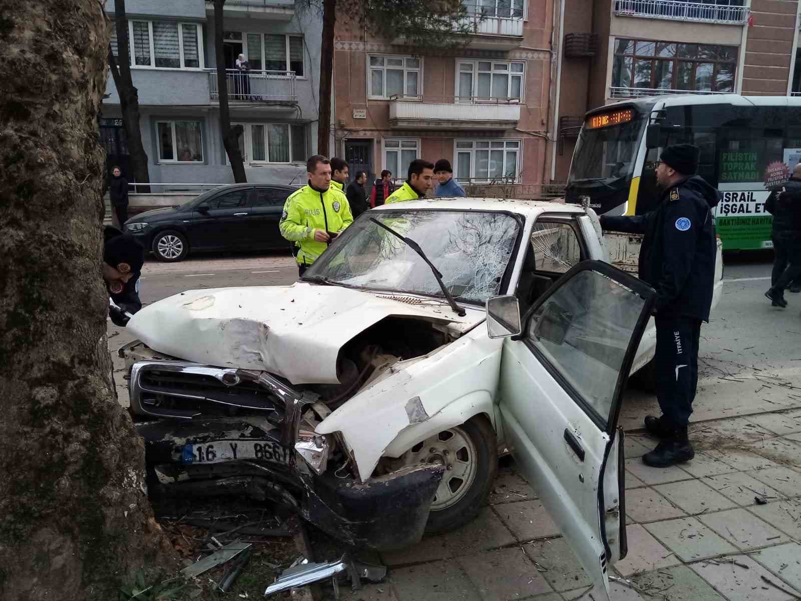 Kaza saat 10.00 sıralarında Hamidiye Mahallesi Park Caddesi üzerinde meydana geldi. Cadde üzerinde seyir halinde olan Yusuf Yılmaz (65) yönetimindeki 16 Y 8661 plakalı kamyonetin iddiaya göre, sürücüsü kalp krizi geçirdi. Kontrolden çıkan kamyonet, yol kenarındaki 16 Y 9626 plakalı otomobile, ardından da yol kenarındaki ağaca çarparak durabildi.