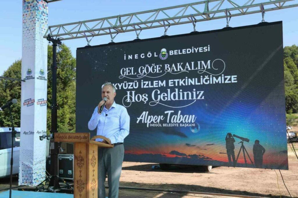 Başkan Alper Taban konuşmasının devamında, “Burada; bilim insanlarımız gökyüzünü anlatıyor, Astronomlarımız Güneş’i, gezegenleri ve yıldızları tanıyor olacaklar. Çocuklarımız çeşitli atölyelerde bilimle tanışıyor, Gençlerimiz yıldızlarla hayaller kuruyor ve biz, hep birlikte İnegöl’ümüzün bu eşsiz güzelliğinin farkına varıyoruz. Bu anlamlı yolculukta bize omuz veren tüm paydaşlara, kıymetli konuşmacılara, değerli bilim insanı hocalarımıza, atölyeleri yürüten Saime Sultan Bilim ve Sanat Merkezi’ne, özveriyle çalışan belediye ekip arkadaşlarıma ve varlıklarıyla bu anı güzelleştiren kıymetli konuklarımıza gönülden teşekkür ederim. Programımız hayırlı uğurlu olsun.” dedi.