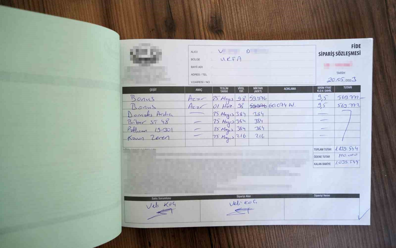Geçtiğimiz Mayıs ayında V.D. isimli kişiden 2 milyon 250 bin liralık karpuz ve çeşitli sebze fidesi siparişi alan Koç, 250 bin lirasını nakit, 2 milyonu ise 4 adet çek karşılığı 211 bin 578 adet fideyi verebileceğini söyledi.