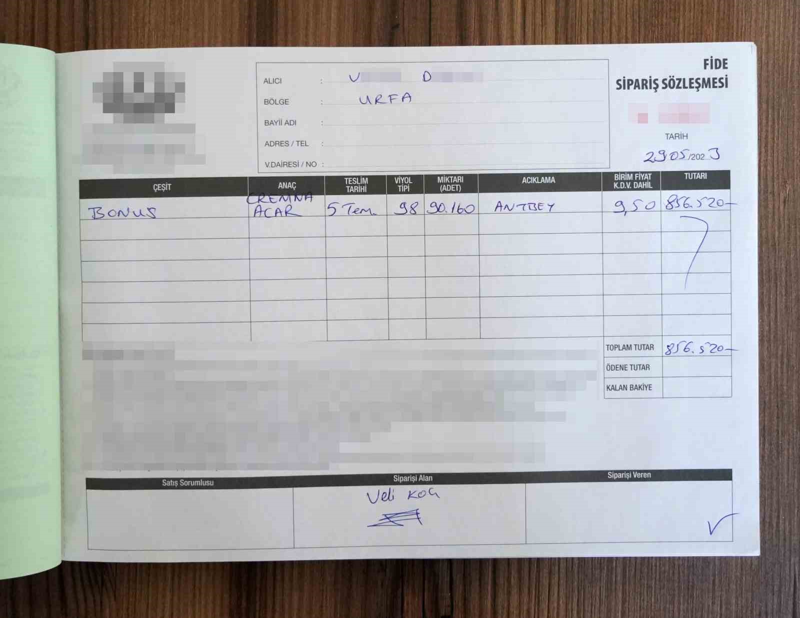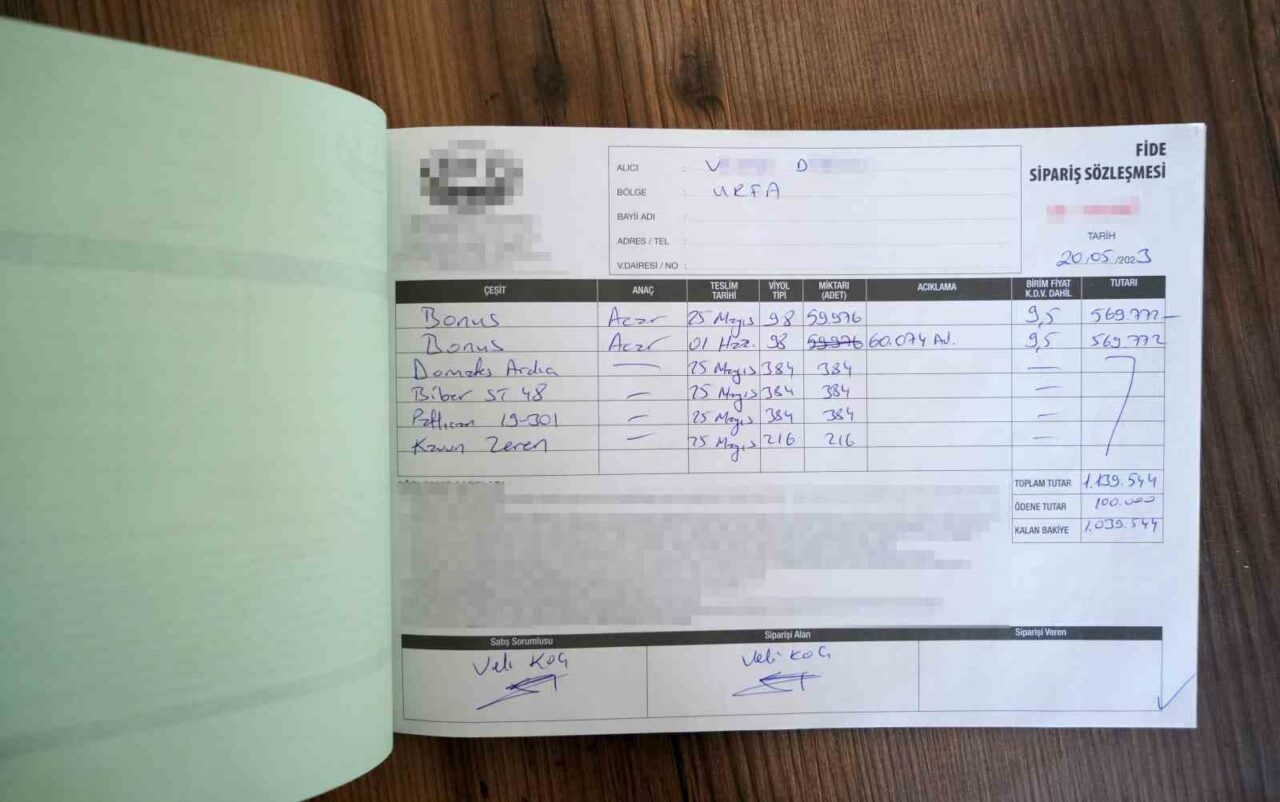 V.D., paranın 250 bin liralık peşin kısmının oğlu D.D. tarafından gönderileceğini belirterek fidelerin teslimini istedi. V.D.’nin verdiği 4 adet çeki ve oğlu D.D.’den IBAN adresine gönderilen 250 bini teslim alan Koç, fideleri Urfa’da istenen adrese gönderdi. Çeklerin ödeme günü geldiğinde karşılıksız olduğunu görünce telefona sarılan Koç, tüm girişimlerine rağmen kimseye ulaşamadı. Kara kara işin içinden nasıl çıkacağını düşünmeye başlayan Koç ve oğlu, kapılarına gelen haciz kağıdı ile bir şok daha yaşadı.