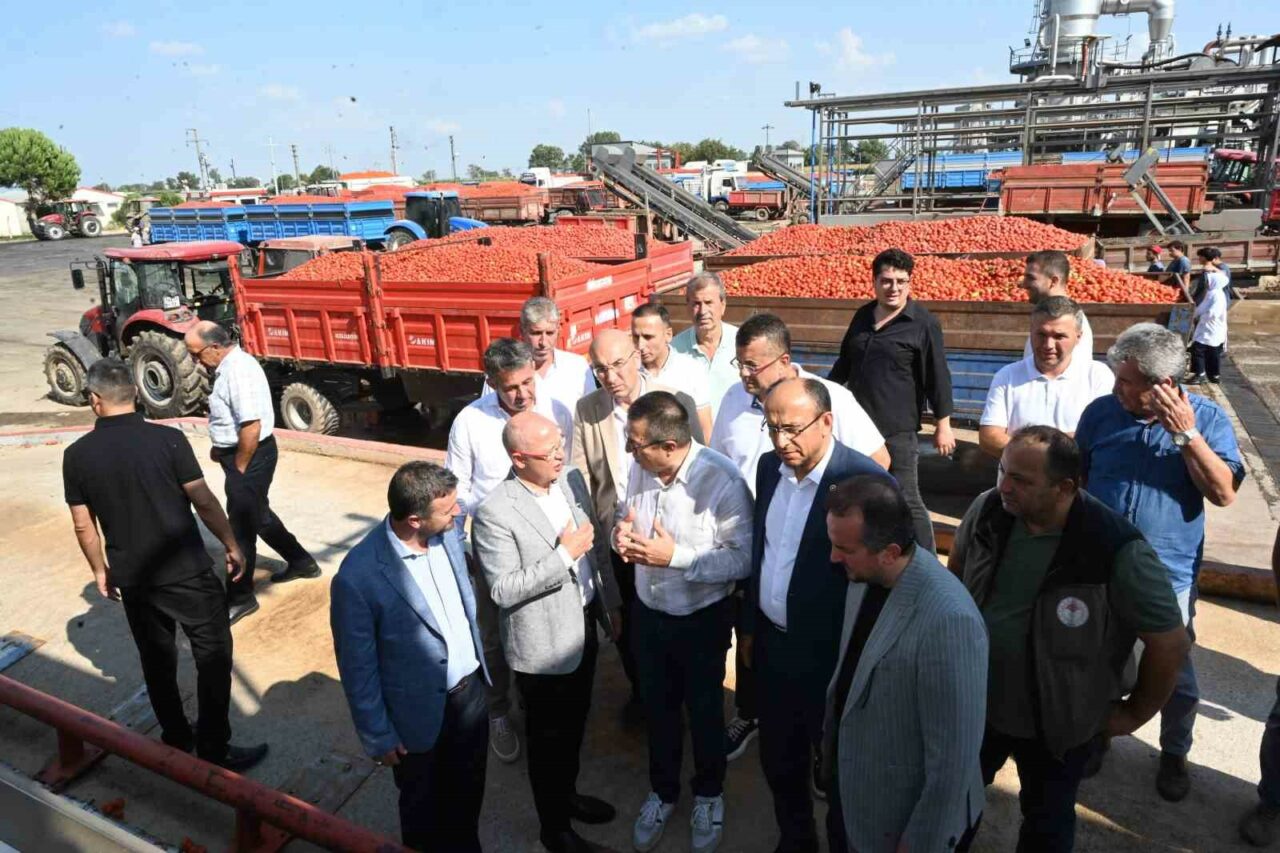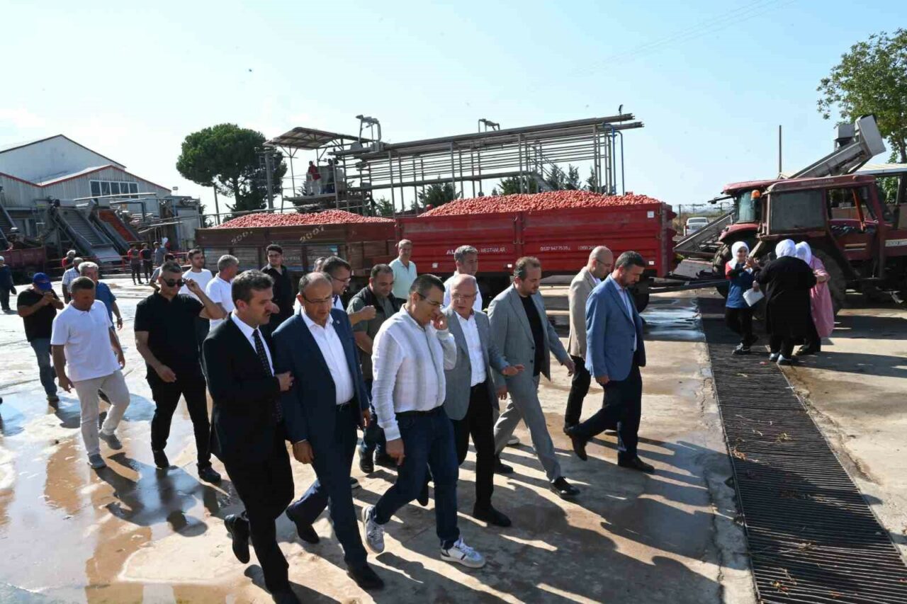 Ticaret Bakanlığı’nın desteğinin hem sahada üretim yapan, alım yapan ve ulusal manada da bu işin ihracatını yapan fabrikalara ciddi bir moral motivasyon olduğunu kaydeden Davut Gürkan, ” Bugün de bu dolaşmış olduğumuz tesis neredeyse bu ovada yetişmiş olan 1 milyon 500 bin ton üretimin neredeyse 400 bin ton civarında alımını yapıyor. Çok şükür onları da yerlerinde gördük. Her gün neredeyse 4 bin tondan aşağı olmamak üzere 5 bin ton civarında alım yapıyorlar. Çiftçimizi de bu konularda rahatlatmaya çalışıyorlar. Fabrikalar Ticaret Bakanlığımızın vermiş olduğu destekler doğrultusunda alımlarla ilgili destek verirlerse önümüzdeki sürecin her iki tarafın memnuniyet içerisinde düzeltilebileceğini düşünüyorum. İnşallah bu berekete ticari kazançlarında da olmasını bekliyorum. Bugün itibariyle Ticaret Bakanlığı’nın, Tarım ve Orman Bakanlığı’yla beraber istişareleri sonucu almış olduğu bir karar doğrultusunda belirlenmiş fiyat üzerinde alım yapan üreticilere özel bir destek verilecek. Bu desteğin de üreticilerimize büyük manada bir katkı sağlayacak ve bu hem rekolte fazlası dediğimiz hem de son dönemdeki üretimin ciddi manada fayda sağlayacağını üreticilerine de güzel bir katkı sağlayacak. Hem bu konuda üretim yapan özellikle de ihracat yapan fabrikalarımız daha güçlü daha kuvvetli bir alım yapacaklar. İnşallah üreticilerimizin mahsulleri yerde kalmayıp Ticaret Bakanlığı’nın yapmış olduğu bu desteğin ciddi katkı sağlayacağını düşünüyorum” şeklinde konuştu.