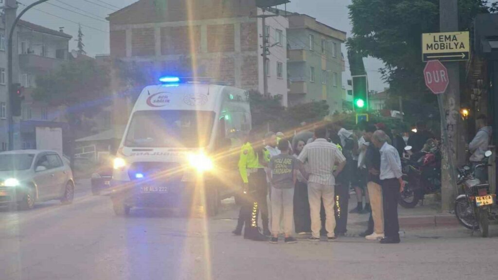 Kaza, saat 21.00 sıralarında Mesudiye Mahallesi İnegöl Caddesi üzerinde meydana geldi. B.K.’nın (17) kullandığı 16 BIL 290 plakalı motosiklet, Civan Sokak’tan caddeye çıkış yapmakta olan Emre D. (26) yönetimindeki 10 AIC 566 plakalı otomobile yandan çarptı. Çarpışmanın etkisiyle devrilen motosikletten düşen sürücü ve arkasında oturan Melih G. (18) yaralandı. Yaralılar, kaza yerine sevk edilen ambulansla İnegöl Devlet Hastanesi’ne kaldırılarak tedavi altına alındı. Yaralıların sağlık durumlarının iyi olduğu öğrenildi. Kaza anı bir iş yerinin ve yoldan geçen bir aracın kamerasına saniye saniye yansıdı.