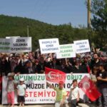 Maden önünde gerçekleştirilen protestoda köylüler, krom madeni tesisinin kurulmasına tepki göstererek, ’’Burada fabrika olmaz, biz buradaki göletten gelen suyla yaşamımızı sürdürüyoruz’’ dedi.