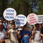 Su kullanımının insan hayatında çok önemli bir yere sahip olduğunu belirten Demir, “Su insan yaşantısı, köylümüz, hayvanlarımız, çiftçimiz ve ormanlarımız için en önemli varlıktır. Ama maden öyle değildir. Burada bir kişi zengin olacak, su kuruyunca hepimizin hayatı tehlikeye girecek. Bu köylerde 6 bin kişi yaşıyor. Bu sudan 6 bin kişi faydalanıyor. 6 bin kişinin hayatı bu tesisten daha değerlidir. Değerli arkadaşlarım, görüyorum ki haklı olarak çok kızgınsınız. Burada yaşam hakkınız, çocuklarınızın geleceğini savunuyorsunuz. Biz de DOĞADER ve Kent Konseyi olarak bu mücadelenizde sonuna kadar yanınızdayız. Bu tesisi buradan kaldırana kadar sizinle birlikteyiz” diye konuştu.