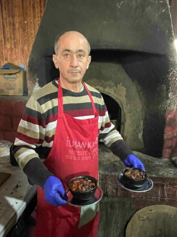 100 yıllık toprak kaselerde 400 yıl öncesinin tarifiyle güveç pişiren kasap Mesut İlhan, 400 yılık geçmişi olan pazarın ilk kez “Osman Dede” isminde evliya bir zat tarafından sadece cuma günleri kurulduğunu ifade ederek, “Ben güveç için perşembe gününden gelip güveçleri hazırlıyorum, fırına koyuyorum, 12 saat fırında kalıyor, cuma sabahı tekrar geliyorum. Çıkarıp fırından kemik suyunu ve baharatını atıp tekrar fırına veriyorum. Ben 3. nesilim burada. Kaseler dedemden kalma, 100 yıllık geçmişleri var her birinin. Güveci iki çeşit yapıyoruz erkeç (keçi) ve dana güveci ayrı ayrı yapıyoruz. Yalova, Ankara, Çanakkale, İstanbul, Bursa, Kütahya her yerden yemek yemeğe insanlar geliyor. Burada o evliya zatın duası var, burada huzurlu olursunuz. Burada yediğiniz yemeğin lezzetini başka yerde bulamazsınız. Güveç 400 yıldır aynı tarifle yapılıyor. Lezzeti de iç yağlardan geliyor. Böbrek yağlarını eti koyduktan sonra onun üzerine koyuyoruz. Kendi yağında 12 saatte pişiyor. Daha sonra kemik iliği suyu ile suyunu tamamlıyoruz. Lezzetin sırrı bu ve organik dağlarda beslediğimiz hayvanlarımız” dedi.