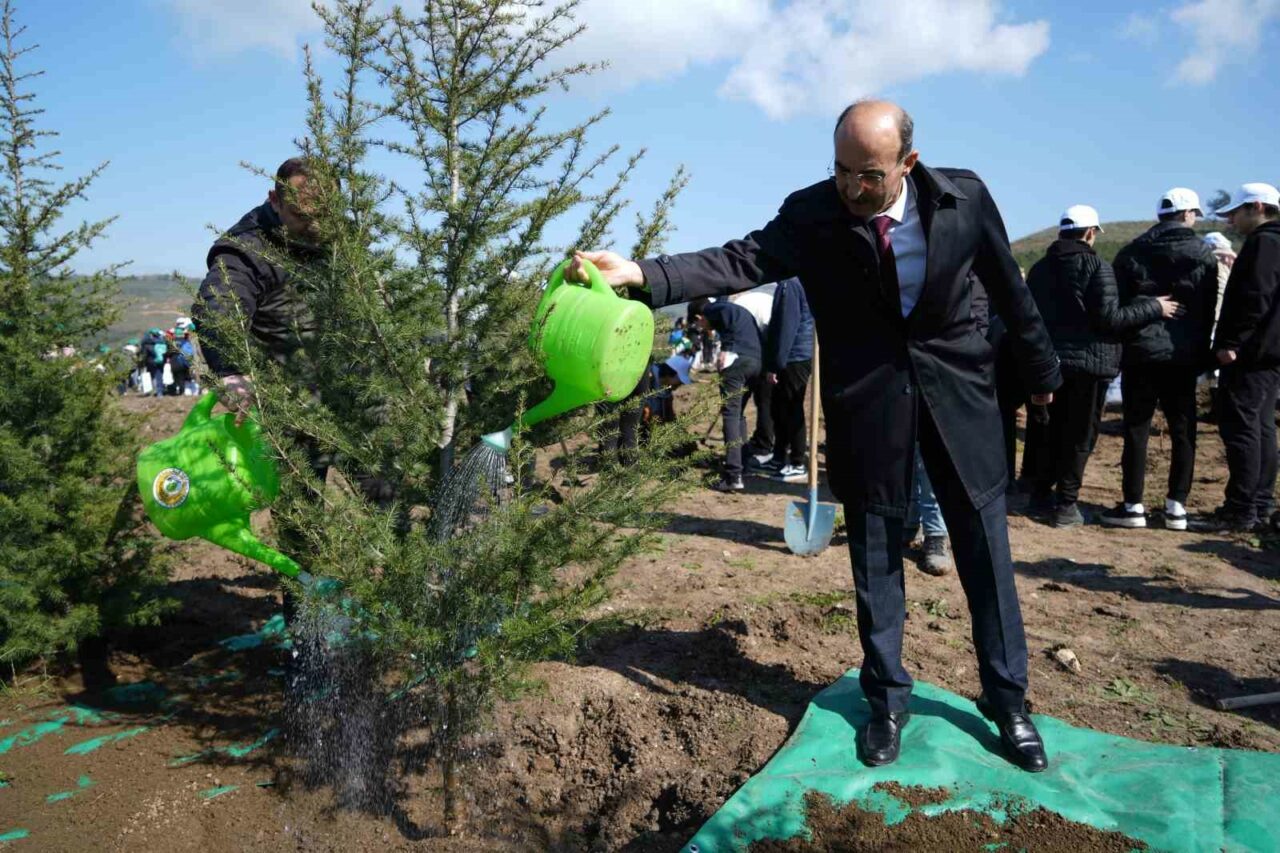 Etkinlikte konuşan Bursa Vali Yardımcısı Mustafa Kılıç, “Ülkemizde 1975 yılından bu yana 21 Mart tarihi Ormancılık Günü olarak kutlanmaktadır. 21 Mart aynı zamanda bahar bayramımızdır. Ülkemizin de içinde bulunduğu kuzey yarım kürede baharın, güney yarım kürede de kışın başlangıcıdır. Doğanın uyanışı ve bitkilerin yeniden canlanması ile birlikte ormanlarımıza gereken önemi vermek çocuklarımıza güzel örnek olmak ve temiz bir dünya bırakabilmek maksadıyla bugünü sizlerle birlikte fidan dikerek kutlayacağız. Ormanlarımız ülkemizin akciğerleri en büyük zenginlik ve yaşam kaynağımızdır. Hayatımızın her alanında ormanlar, ağaçlar ve ağaç ürünleri yaşamamızın ayrılmaz birer parçasıdır. Bu nedenle ormanlarımızı koruyup kollayıp mümkün olduğunca çoğalmamız hayat felsefemiz olmalıdır. Ülkemizde ağaç ve orman sevgisini geliştirmek toplumuz bütün kesimlerini çevreye olan duyarlılıklarına katkı sağlamak ve toplumda bu konuda farkındalığı arttırmak için bugün burada sizlerle birlikte günün anısına bin adet kızılçam fidanı dikeceğiz. Orman Bölge Müdürlüğümüzün Bursa’da 2024 yılı içerisinde 800 hektar alanda 1 milyon 650 bin fidan toprakla buluşturulacak” dedi.