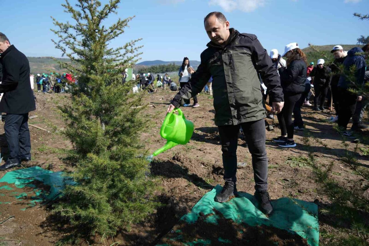Etkinlikte konuşan Bursa Vali Yardımcısı Mustafa Kılıç, “Ülkemizde 1975 yılından bu yana 21 Mart tarihi Ormancılık Günü olarak kutlanmaktadır. 21 Mart aynı zamanda bahar bayramımızdır. Ülkemizin de içinde bulunduğu kuzey yarım kürede baharın, güney yarım kürede de kışın başlangıcıdır. Doğanın uyanışı ve bitkilerin yeniden canlanması ile birlikte ormanlarımıza gereken önemi vermek çocuklarımıza güzel örnek olmak ve temiz bir dünya bırakabilmek maksadıyla bugünü sizlerle birlikte fidan dikerek kutlayacağız. Ormanlarımız ülkemizin akciğerleri en büyük zenginlik ve yaşam kaynağımızdır. Hayatımızın her alanında ormanlar, ağaçlar ve ağaç ürünleri yaşamamızın ayrılmaz birer parçasıdır. Bu nedenle ormanlarımızı koruyup kollayıp mümkün olduğunca çoğalmamız hayat felsefemiz olmalıdır. Ülkemizde ağaç ve orman sevgisini geliştirmek toplumuz bütün kesimlerini çevreye olan duyarlılıklarına katkı sağlamak ve toplumda bu konuda farkındalığı arttırmak için bugün burada sizlerle birlikte günün anısına bin adet kızılçam fidanı dikeceğiz. Orman Bölge Müdürlüğümüzün Bursa’da 2024 yılı içerisinde 800 hektar alanda 1 milyon 650 bin fidan toprakla buluşturulacak” dedi.