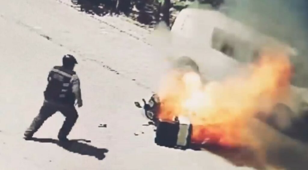 Bursa’da seyir halindeki elektrikli bisikletin bataryasının patlaması sonucu yangın çıktı. Sürücü canını son anda kurtarırken o anlar güvenlik kamerasına yansıdı.