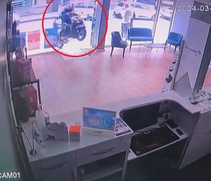 Bursa’da motosikletin üstünde arkadaşıyla konuşan vatandaş, elini gaz pedalında unutunca dükkana daldı. O anlar güvenlik kamerasına yansıdı.