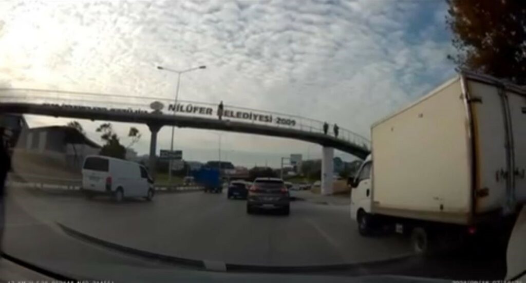 Bursa’da en sağ şeritten en sola geçmek isteyen kamyonet, kazaya sebebiyet verdi. O anlar saniye saniye araç içi kamerası ile kaydedildi.