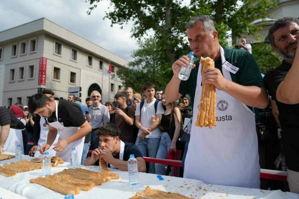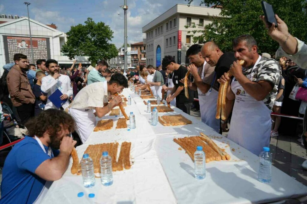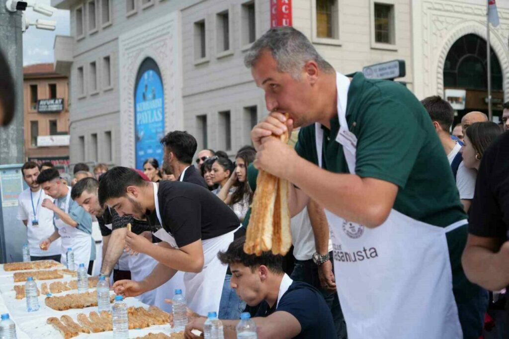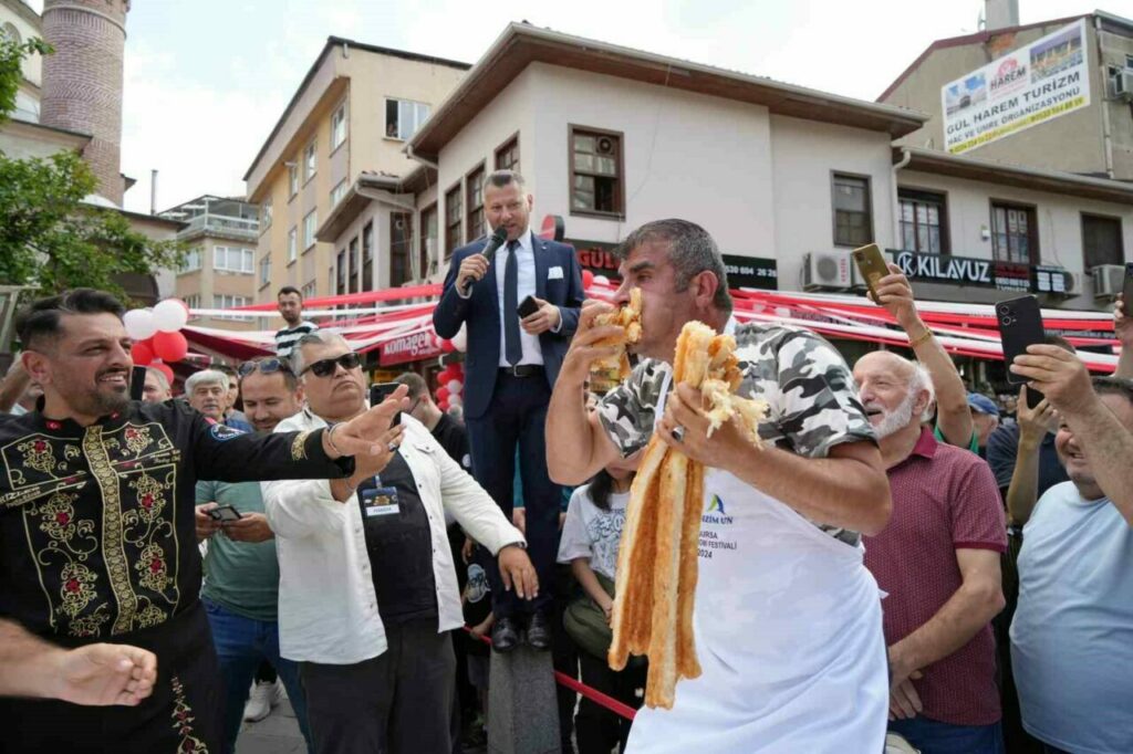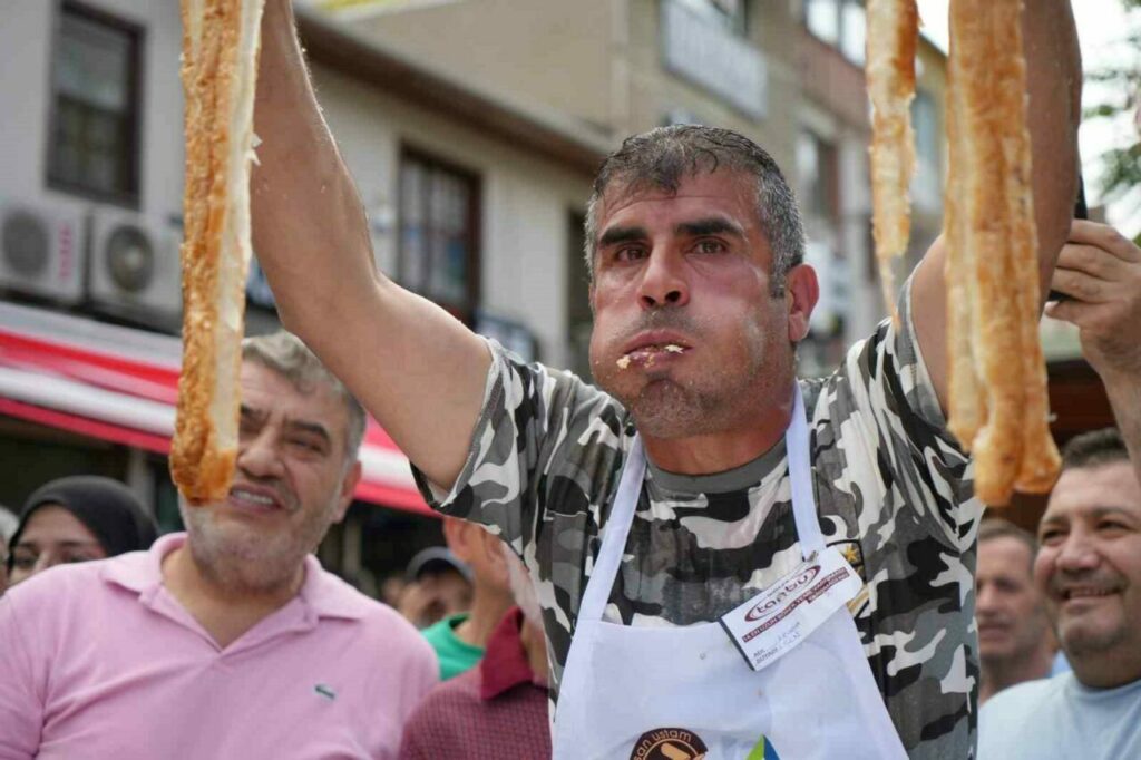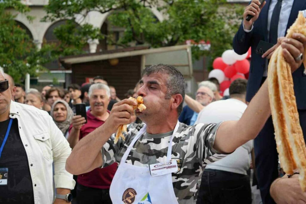 İstanbul’un ardından 14’üncüsü Bursa’da düzenlenen Geleneksel Börek Yeme Yarışması’nda yarışmacılar 5 dakikada 16 metre börek yemek için mücadele etti. İlk 3’e giren 3 yarışmacıda aynı metrede börek yeme başarısını gösterince ’VAR’a gidildi. Hassas terazi ile tartılan böreklerde birinciyi 40 gramlık fark belirledi. 11 metre börek yiyen Ali Kılıç geriye 584 gram en az böreği bırakarak yarışmanın birincisi oldu. Aynı metre börek yiyen bayan yarışmacı Fatma Arslan geriye 624 gram börek bırakarak 2., Uğur Dündar ise bıraktığı 700 gram börekle 3. oldu. Birinci 10 gram altının sahibi oldu.