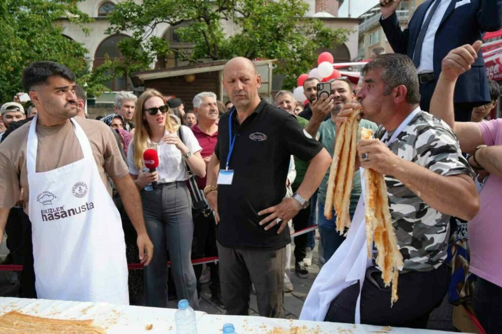 İstanbul’un ardından 14’üncüsü Bursa’da düzenlenen Geleneksel Börek Yeme Yarışması’nda yarışmacılar 5 dakikada 16 metre börek yemek için mücadele etti. İlk 3’e giren 3 yarışmacıda aynı metrede börek yeme başarısını gösterince ’VAR’a gidildi. Hassas terazi ile tartılan böreklerde birinciyi 40 gramlık fark belirledi. 11 metre börek yiyen Ali Kılıç geriye 584 gram en az böreği bırakarak […]