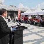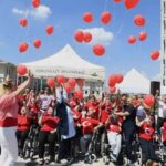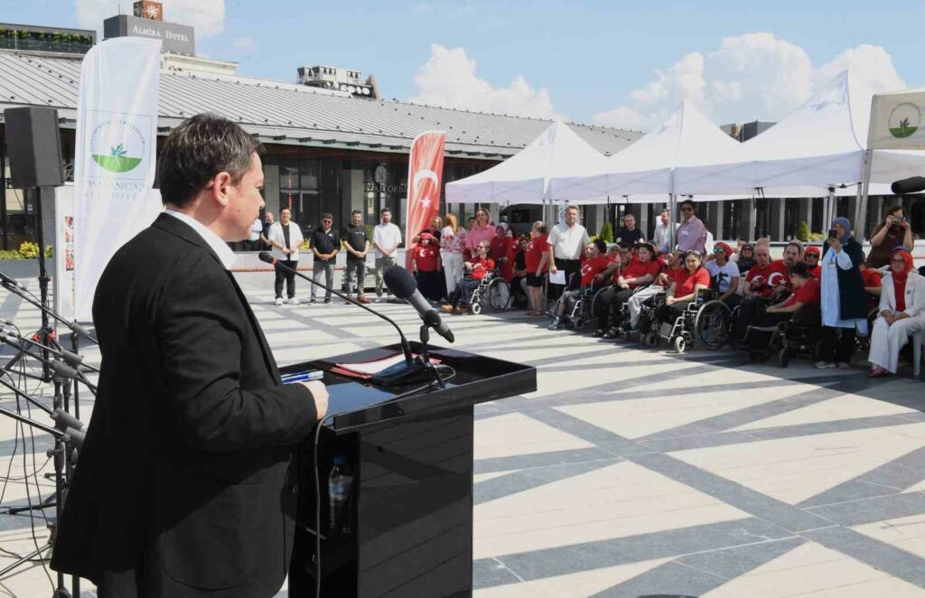 Programın sonunda engelli bireyler ellerindeki Türk Bayrağı baskılı balonları gökyüzüne saldı.