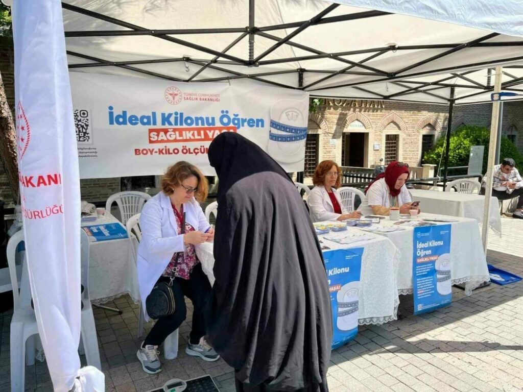 İl sağlık müdürlüğü ekipleri tarafından, Bursa’daki park ve meydanlarda kilo ölçümü yapılan vatandaşlardan vücut kitle endeksi riskli olanları sağlıklı hayat merkezlerine yönlendiriliyor.