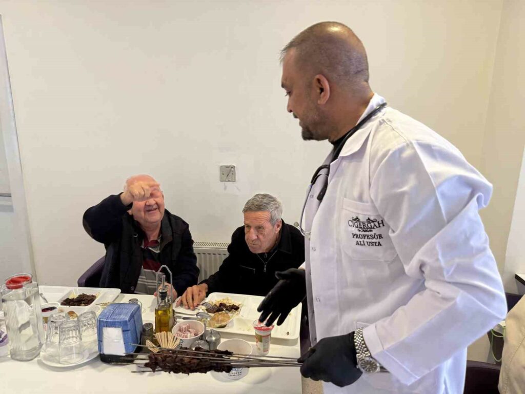 Bursalı işletmeci yaşlılar gününde huzurevi sakinlerine ciğer kebap ziyafeti verdi.