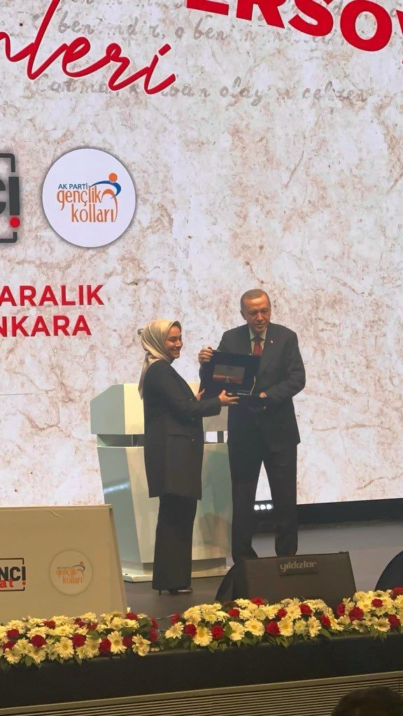 AK Parti Genel Merkez Gençlik Kolları Başkanlığı tarafından düzenlenen Mehmet Akif Ersoy’u Anma Programı’nda Mektup kategorisinde birinci olan Bursalı Feyzanur Özçelik Ünal ödülünü Cumhurbaşkanı Recep Tayyip Erdoğan’ın elinden aldı.