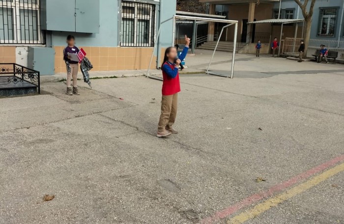 Okul bahçesinde öğrenciler şiirlerini boş alana okumak zorunda kalırken, veliler bu duruma tepki gösterdi.