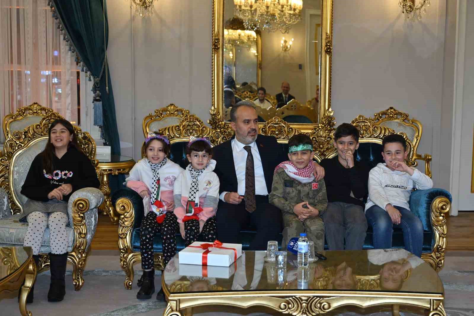 İsrail’in 60 gündür bombalayarak soykırım suçu işlediği Gazze Şeridi’ndeki gelişmeleri, kilometrelerce öteden korku ve endişeyle takip eden Bursa’daki Filistinli çocuklar, Bursa Büyükşehir Belediye Başkanı Alinur Aktaş’ı ziyaret ederek desteklerinden dolayı teşekkür etti.