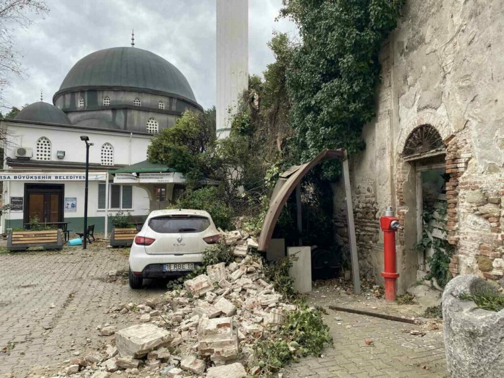 Bursa’nın Mudanya ilçesine bağlı Aydınpınar Mahallesi’nde bulunan tarihi Aydınpınar Kilisesi, etkili olan fırtına nedeniyle kısmen çöktü. Olayda çevredeki yapılar da zarar görürken, mahalle muhtarı yetkililere acil çağrıda bulundu.