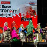 ‘Bursa’nın Yaşayan Kültürü’ bölümünde ise Nilüfer Belediyesi Halk Dansları Topluluğu tarafından tavuk alma ritüeli sahnelendi. Bursa’ya özgü geleneklerin yansıtıldığı gösteriye, Bursalılar da oldukları yerden katıldı.