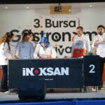 Bursa’nın lezzetlerini ilçelerle buluşturmak ve Bursalıları festivale davet etmek amacıyla Büyükşehir Belediyesi tarafından ilçelerde gezdirilen Gastronomi Tırı’nın yeni durağı Gürsu oldu. Belediye Başkanı Mustafa Işık ve Eşi Sümeyye Işık tarafından sahnede özel bir mutfakta hazırlanan menü ile Gürsu’nun lezzetleri tanıtıldı. Akademisyen Şef Fatih Yıldırım, Bursa Aşçılar Derneği Kadın Kolları Başkanı Tülay Dönmez, Eğitmen Şef Selin Sekizkardeşler ve Eğitmen Şef AybiçeTaylak’ın yardımları ile anlatılan menüde Gürsu bamyasından bamya çorbası, hinkal ve armutlu kurabiye yapıldı.