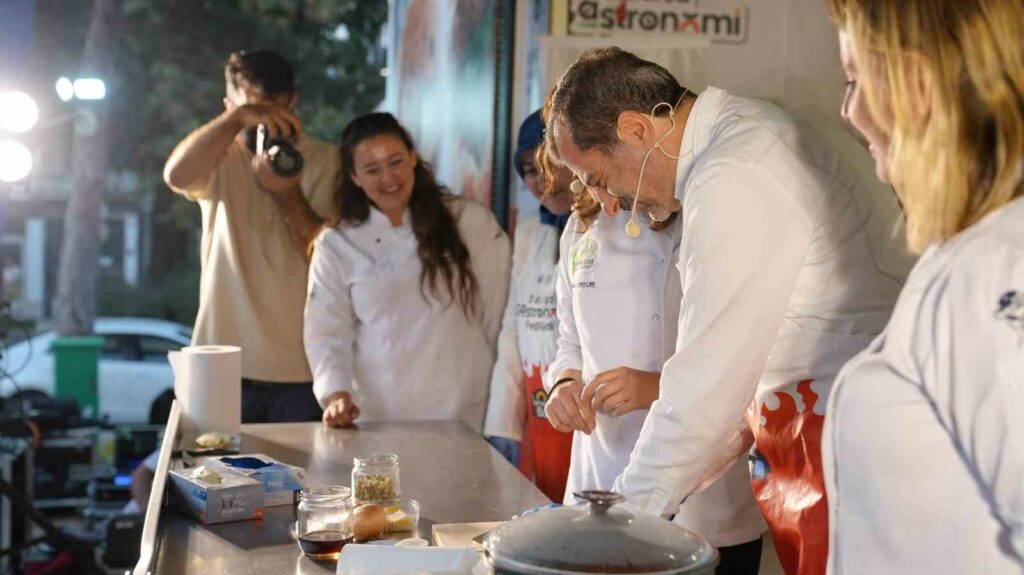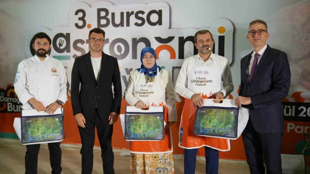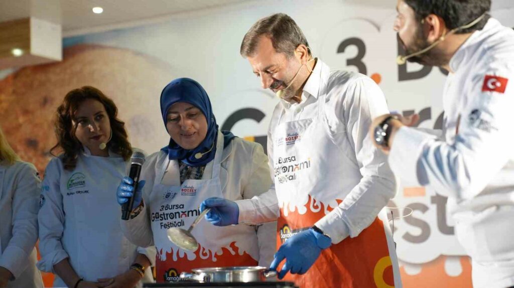 Bursa’nın lezzetlerini ilçelerle buluşturmak ve Bursalıları festivale davet etmek amacıyla Büyükşehir Belediyesi tarafından ilçelerde gezdirilen Gastronomi Tırı’nın yeni durağı Gürsu oldu. Belediye Başkanı Mustafa Işık ve Eşi Sümeyye Işık tarafından sahnede özel bir mutfakta hazırlanan menü ile Gürsu’nun lezzetleri tanıtıldı. Akademisyen Şef Fatih Yıldırım, Bursa Aşçılar Derneği Kadın Kolları Başkanı Tülay Dönmez, Eğitmen Şef Selin Sekizkardeşler ve Eğitmen Şef AybiçeTaylak’ın yardımları ile anlatılan menüde Gürsu bamyasından bamya çorbası, hinkal ve armutlu kurabiye yapıldı.