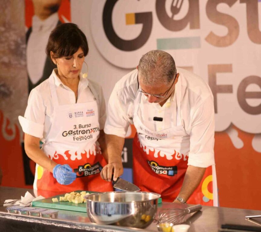 Bursa Büyükşehir Belediyesi tarafından 13-14-15 Eylül tarihlerinde Merinos Parkı’nda gerçekleştirilecek olan 3. Bursa Gastronomi Festivali öncesinde, Bursa’nın lezzetlerini tanıtmak ve Bursalıları festivale davet etmek amacıyla gezen Gastronomi tırının, Mudanyalılar ile buluştu. Mütareke Meydanı’nda gerçekleştirilen etkinliğe Bursa Büyükşehir Belediyesi Genel Sekreter Yardımcısı Mehmet Yıldız, Mudanya Belediye Başkanı Deniz Dalgıç, Mudanya Belediye Başkan Yardımcısı Baran Güneş, Kültür A.Ş. Genel Müdürü Yankı İçöz ve Mudanya Belediye Meclis Üyeleri’nin yanı sıra çok sayıda Mudanyalı katıldı. Mudanya Belediye Başkanı Deniz Dalgıç, eşi Müge Dalgıç ve Bursalı şefler Barış Uysal, Recep Kantar, Kerem Kurubacak tarafından hazırlanan “Girit Usulü Etli Enginar” yemeği ile Bursa ve Mudanya’nın lezzetleri hakkında önemli bilgiler verildi.