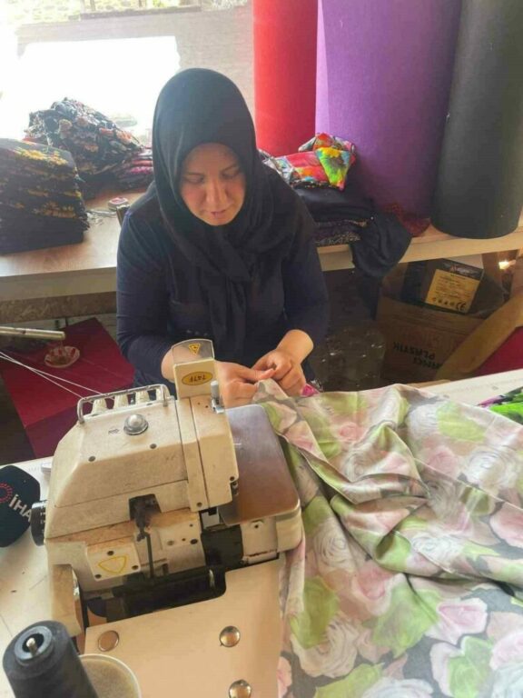 Vakit buldukça şalvar diktiğini ve farklı renklerde yüzlerce satışa hazır ürününün bulunduğunu aktaran Sezer, “Bir şalvarı dikmem 10-15 dakikamı alıyor ama yine de kolay değil. Kesimi dikimi derken parmakların su topluyor ellerimde yaralar oluşuyor. Tülbentleri de 200 liradan satıyorum. Tülbentleri de kendim yapıyorum” dedi.