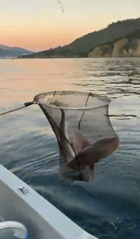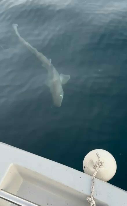 Balıkçılar, köpek balığını görüntüledikten bir süre sonra yeniden denize bıraktı. O anlar cep telefonu kamerasıyla saniye saniye kaydedilirken, görüntüler sosyal medyada kısa sürede ilgi gördü.