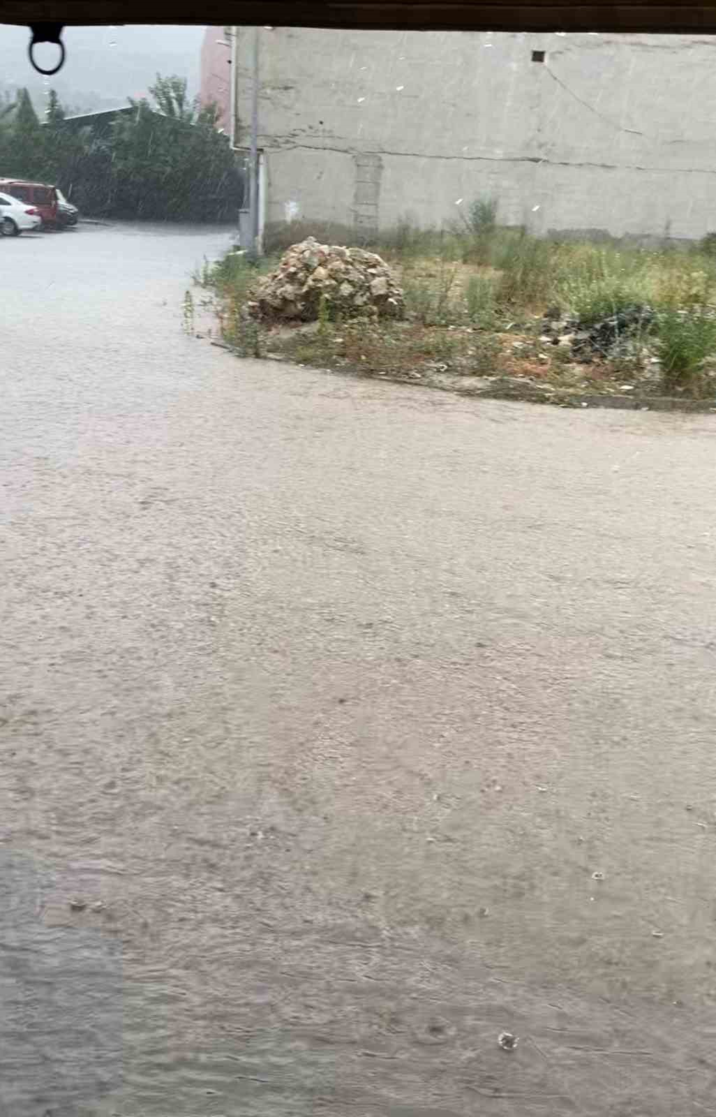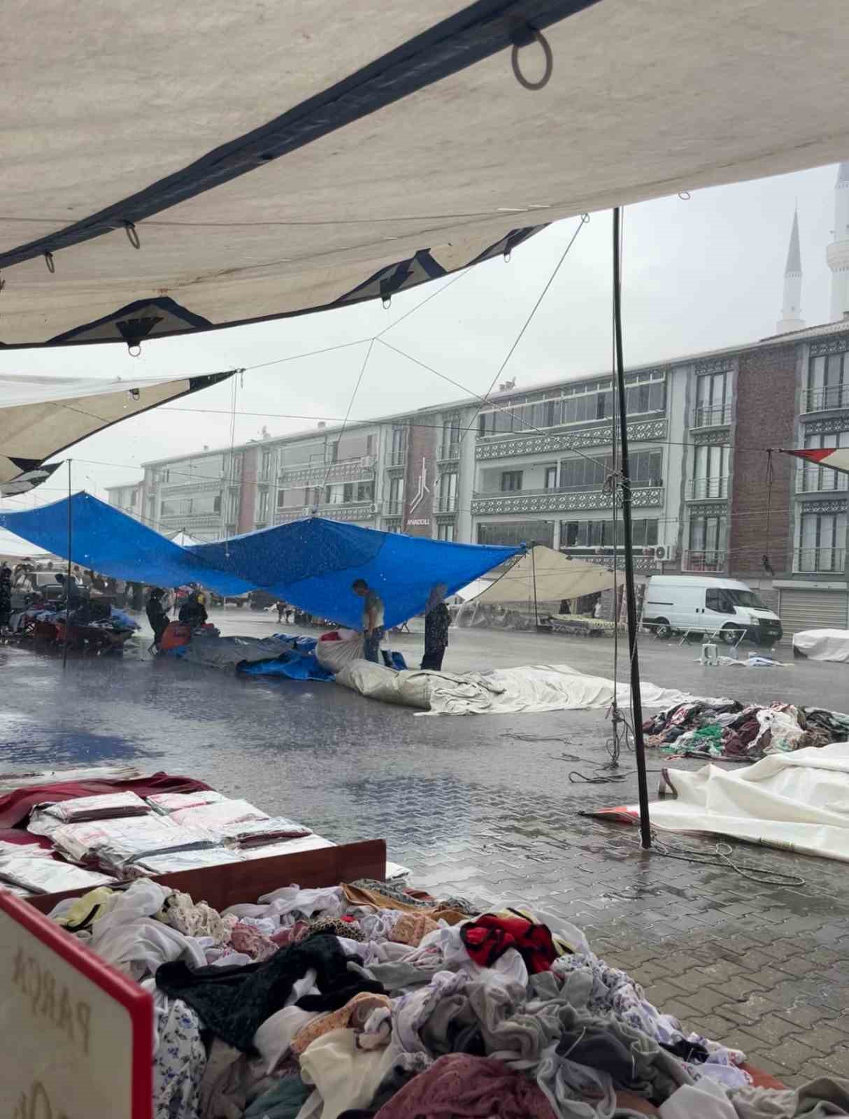 Eşref Dinçer Mahallesi’nde bulunan Perşembe pazar alanı ise tamamen suyla doldu. Bazı pazarcıların malları ıslanırken; bazı pazarcılar da tezgahlarını toplayarak mallarını araçlarına yükledi.