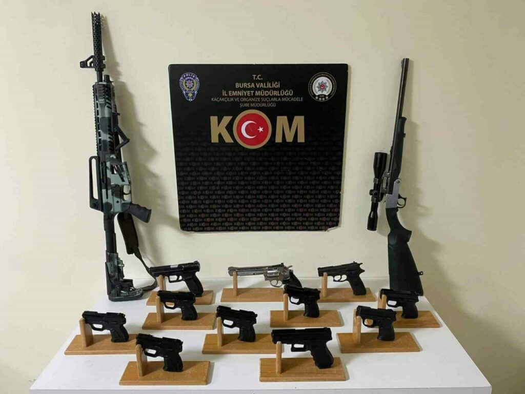 Bursa KOM Şube Müdürlüğü Organize Suçlar Büro Amirliği ve Gemlik İlçe Emniyet Müdürlüğü’nce savcılık koordinesinde ruhsatsız silah imal ve ticareti suçuna yönelik ortak yürütülen planlı çalışma kapsamında yapılan operasyonda, S.T., A.K., V.A. ve E.E. gözaltına alındı. Şüphelilerin ev ve iş yeri aramalarında 10 ruhsatsız tabanca, 2 av tüfeği ve 1 havalı tabanca ele geçirildi.