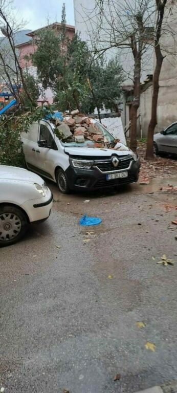 Fırtına sebebiyle uçan çatı ve devrilen duvarlar sebebiyle park halindeki bazı otomobiller ise büyük hasar gördü.