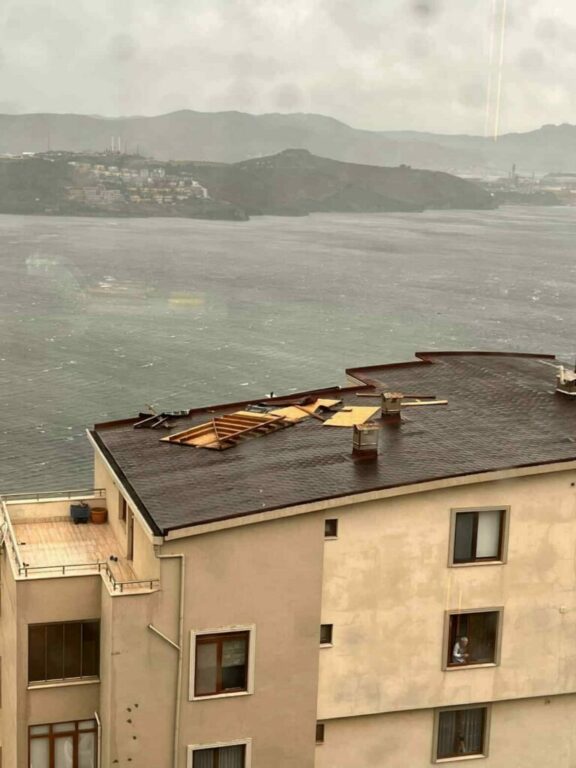 Gemlik’te şiddetli lodos sebebiyle çatılar bir bir uçtu
