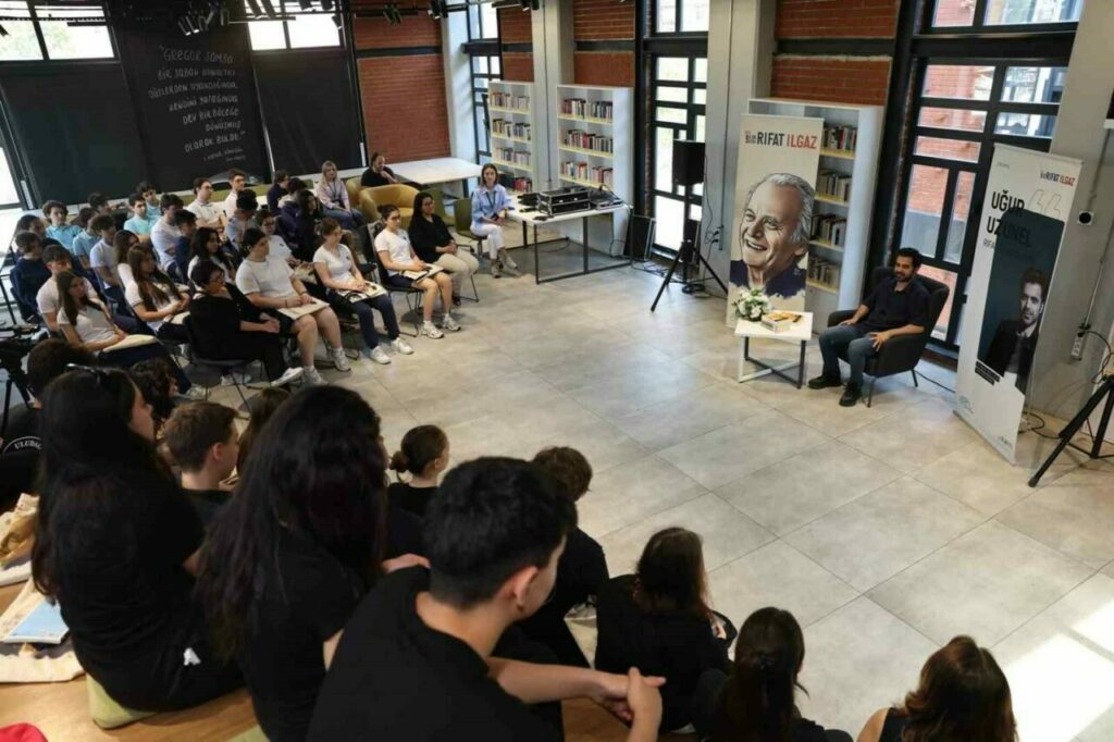Nilüfer Belediyesi’nin “2025 Yılı Yazarı Rıfat Ilgaz” programları kapsamında oyuncu ve yönetmen Uğur Uzunel, Koza Kütüphane’de öğrencilerle bir araya geldi. Uludağ Koleji ve Çakır Okulları’nın lise öğrencileri ile söyleşi gerçekleştiren genç oyuncu, Rıfat Ilgaz’ın yaşamı, yazın hayatı ile ilgili konuştu. Uzunel aynı zamanda yazarın Hababam Sınıfı isimli kitabından “Yataklık” bölümünü okudu.