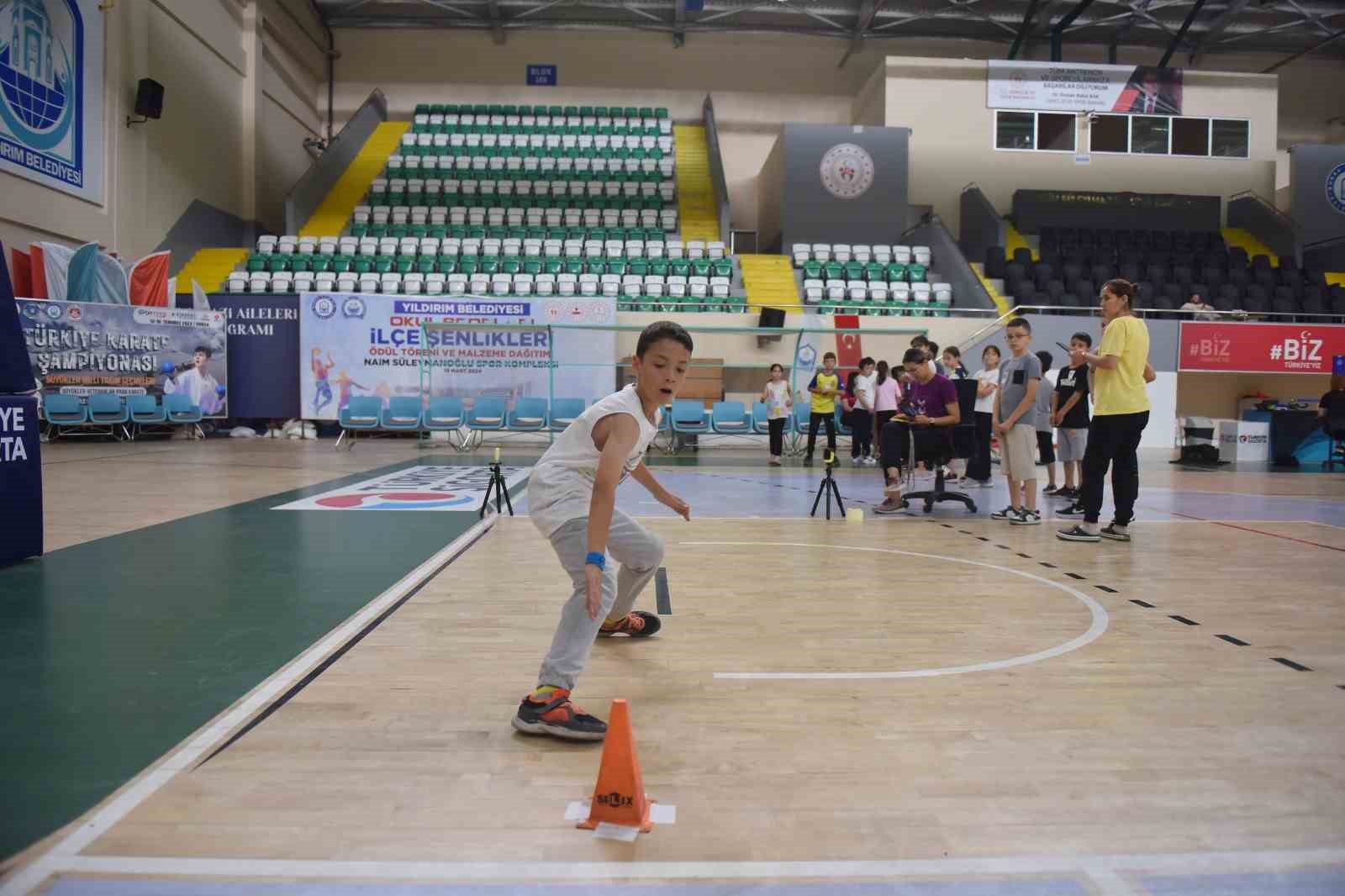 Gençlik ve Spor Bakanlığı ile Millî Eğitim Bakanlığı arasında imzalanan protokol ile hayata geçirilen Türkiye Sportif Yetenek Tarama ve Spora Yönlendirme Projesi çerçevesinde geçtiğimiz yıl Yıldırım’daki 10 bin sporcunun katıldığı tarama testini geçen 600 sporcu karneleme öncesi son teste tabi tutuldu. Bursa’nın en büyük spor kompleksi olan Naim Süleymanoğlu Spor Kompleksi’nde yapılan taramalarda beden eğitimi öğretmenleri ve antrenörlerin ölçümlerini yaptığı proje boy-kilo, oturma yüksekliği, kulaç uzunluğu, sıçrama, el kuvveti, geriye top atma, çabukluk, 20 metre sürat koşusu olmak üzere 12 farklı istasyonda düzenlendi. Her bir çocuk için hazırlanacak ‘Spor Karnesi’ ile tarama sonucunda spora yetenekli olduğu tespit edilen çocuklar yatkınlıklarına göre branşlara yönlendirme yapılacak.