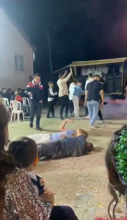Olay Bursa’nın İnegöl ilçesi Kurşunlu mahallesinde meydana geldi. Damadın arkadaşları, beraber çiftetelli oynadıktan sonra çalınan yabancı müzikte adeta farklı bir kareografi yaptılar. Yere yatarak dans eden gençler, dikkatleri üzerlerine çekti.