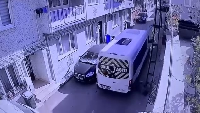 Bursa’da geri manevra yapan servis minibüsü, sokaktan geçen kadının ayağını ezdi. O anlar güvenlik kamerasına yansıdı.