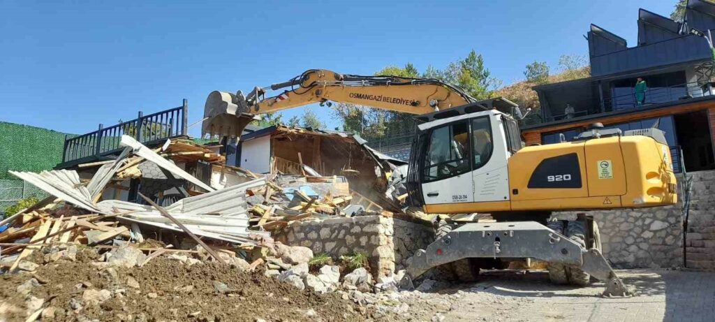 Osmangazi Belediyesi, Uludağ eteklerinde yer alan Gökçeören Mahallesi’nde imara aykırı şekilde inşa edildiği belirlenen villaların yıkımını sürdürüyor. Ekipler, tarım arazisi üzerine imara aykırı şekilde inşa edildiği belirlenen bir villanın daha yıkımı gerçekleştirildi.