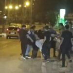 Bursa’da 2 grup arasında çıkan sözlü tartışma bir süre sonra yumruklu kavgaya döndü. Sokağın ringe döndüğü anlar amatör kameraya yansıdı.