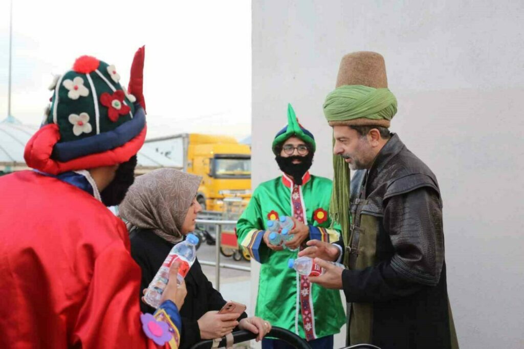 ‘Velhasıl Bursa sudan ibarettir’ diyerek tarihe not düşen Evliya Çelebi kıyafetiyle sahaya inen Başkan Işık, yanına Hacivat ve Karagözü de alarak, “Görüyoruz ki Velhasıl Bursa sudan mahrum. Şovdan ibaretmiş” dedi.
