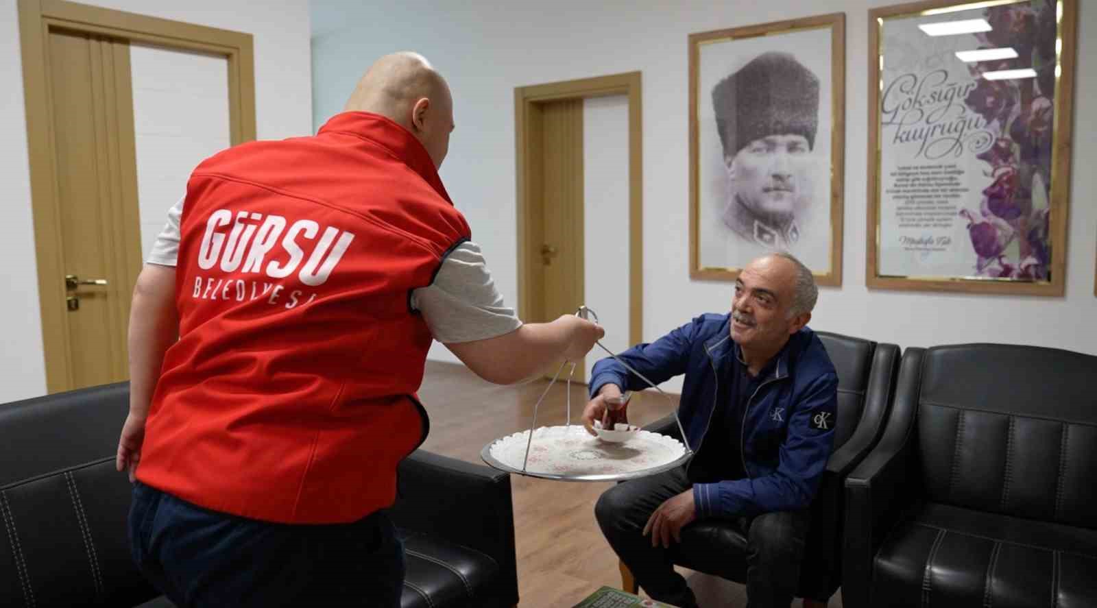 Gürsu Belediyesi’nin daimi konuklarından Mesut Yılmaz, Engelliler Haftası nedeniyle kameralar karşısına geçti. Belediyeye geldiğinde çok sevdiği çay ocağında saatlerce vakit geçiren Mesut’u mutlu etmek isteyen Gürsu Belediye Başkanı Mustafa Işık, Mesut’a bir günlük sorumluluk vererek çay ocağını yönetmesini istedi. “Mesut, hepimizin göz bebeği” diyen Gürsu Belediye Başkanı Mustafa Işık, “İlçe halkımız ve Belediye personellerimizle olan sıcak iletişimiyle herkes tarafından çok sevilen Mesut kardeşimizi, bu özel hafta çerçevesinde, belediyemizin çay ocağı sorumlusu yaptık. Azmi, çalışkanlığı ve ustalığıyla üstlendiği görevi en iyi şekilde yerine getirerek, yine kalplerimizi fethetti. Mesele kalplerdeki engelleri kaldırmak, engelli kardeşlerimizin kendilerine imkanlar sunulduğunda neler yapabileceklerini göstermiş olduk” dedi.