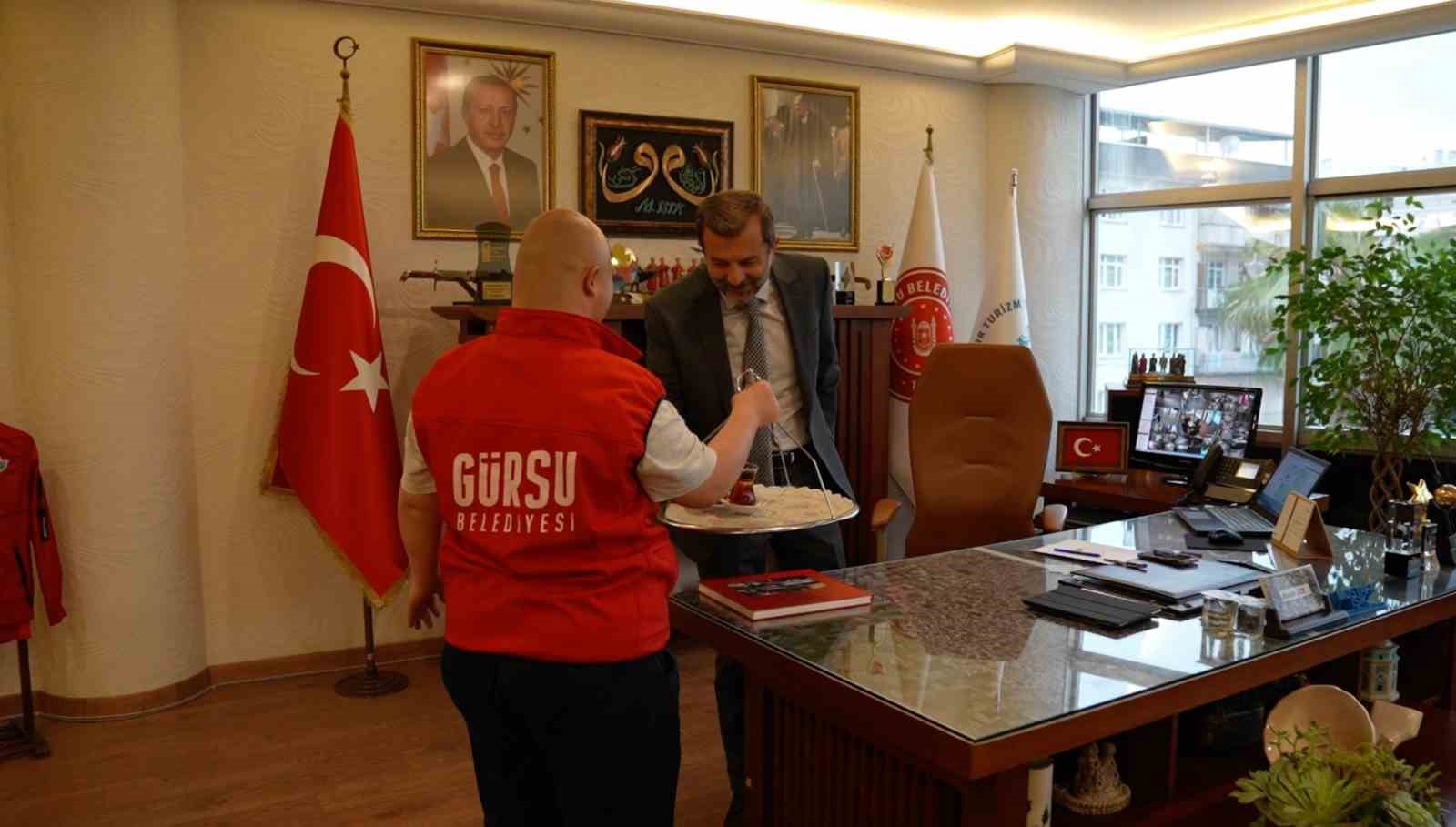 Gürsu Belediye Başkanı Mustafa Işık, Engelliler Haftası nedeni ile sosyal medyada çok ilgi çeken bir çalışmaya imza attı. İlçenin sevilen simalarından down sendromlu Mesut Yılmaz’ı çay ocağının başına getirdi. Bir günlük temsili sorumluluk alan Mesut’un mesaisi herkesi gülümsetti.