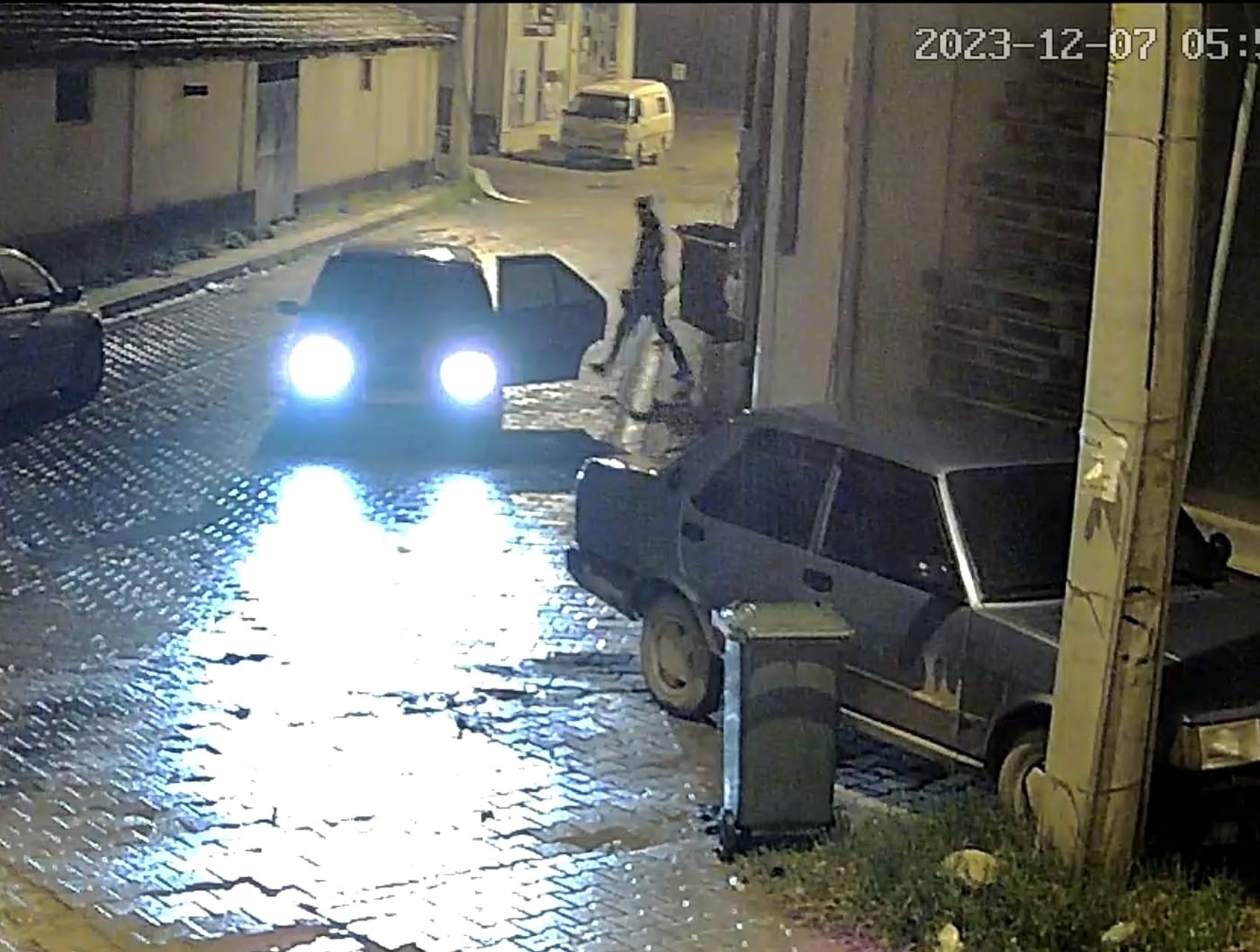 Olay, dün sabah 05.00 sıralarında İnegöl Cumhuriyet Mahallesinde meydana geldi. Sokağa yürüyerek giren şüpheli, park halindeki 16 ANH 999 plakalı aracın kapısını zorlayarak açtı. Araçtaki teyp ve malzemeleri alan şahıs, sokaktaki apartmanın girişine malzemeleri sakladı. 5 dakika sonra başka bir araçla olay yerine geldi. Geldiği apartmanın girişine sakladığı çaldığı malzemeleri araca koyarak kayıplara karıştı.