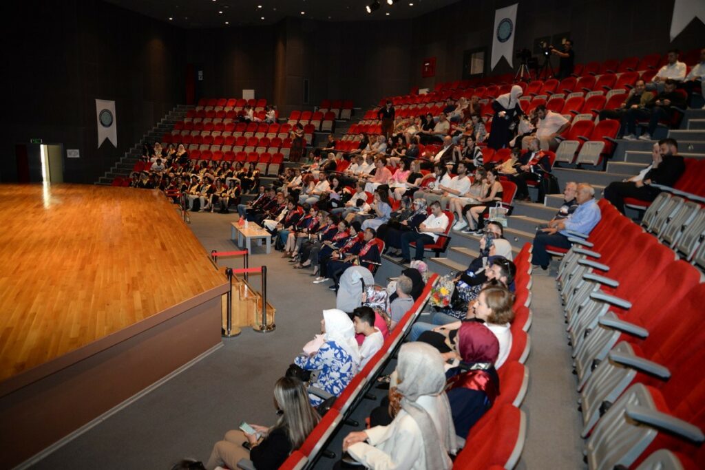 Güzel Sanatlar Fakültesi Dekanı Prof. Dr. Hatice Şahin ise tüm bölümlere özel yetenek sınavlarıyla öğrenci aldıklarını hatırlattı. Bugüne kadar 376 öğrenciyi mezun ettiklerini aktaran Dekan Şahin; “Bu eğitim-öğretim yılındaki kayıtlı öğrenci sayımız ise 208’dir. Fakülte olarak sanatsal, bilimsel ve mesleki bilgi birikimi ile tercih edilen bireyler yetiştirme vizyonuyla çalışıyoruz. Bir yandan da bireyin ve toplumun sanata ilgisini arttırmayı amaçlıyoruz. Desteklerini esirgemeyen üst yöneticilerimize, görevlerini fedakârlıkla yapan akademisyenlerimize ve idari personelimize en içten teşekkürlerimizi sunuyoruz. Ailelerimize emeklerinden ötürü teşekkür ediyoruz. Öğrencilerimizi de mezuniyetlerinden dolayı tebrik ediyor, yeni hayatlarında başarılar diliyoruz” açıklamasında bulundu. Fakülte ve bölümlerde derece yapan öğrencilerin anı belgesi ve teşekkür plaketi ile ödüllendirildiği program, katılan tüm öğrencilerin kep fırlatmasıyla tamamlandı.
