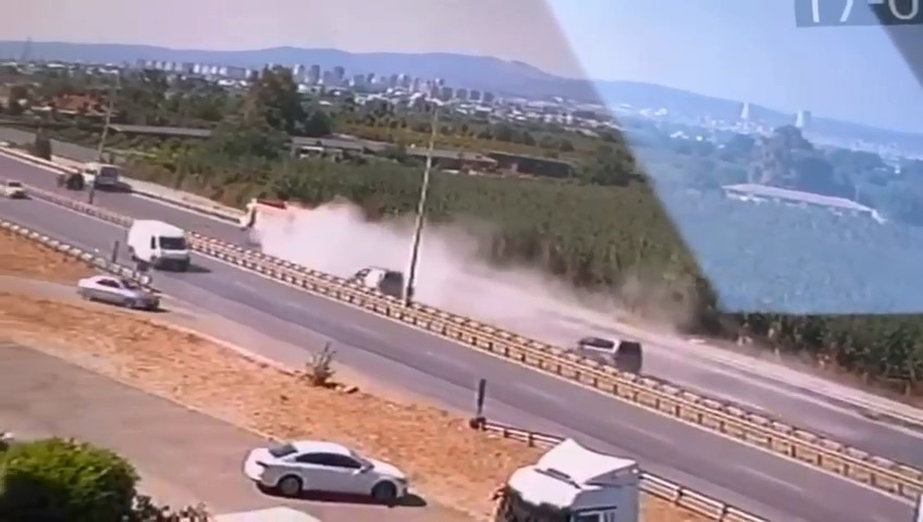 Olay, merkez Yıldırım ilçesi 11 Eylül Bulvarı üzerinde meydana geldi. Edinilen bilgiye göre, seyir halinde olan hafriyat kamyonunun lastiği bomba gibi patladı. Facianın eşiğinden dönülen anlar, saniye saniye güvenlik kamerasına yansıdı.