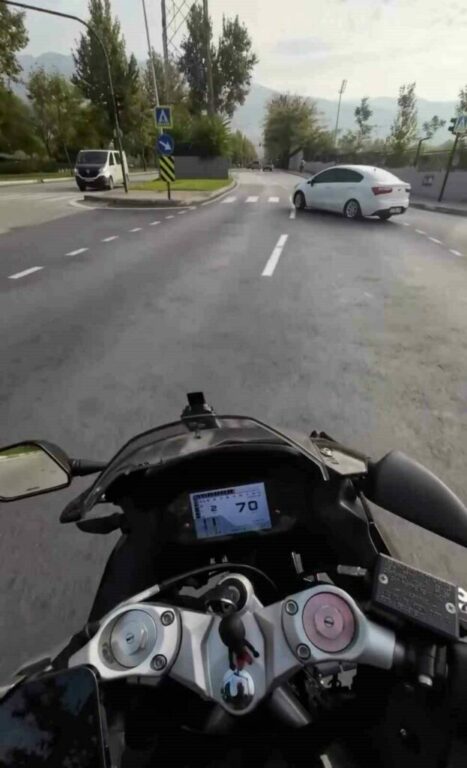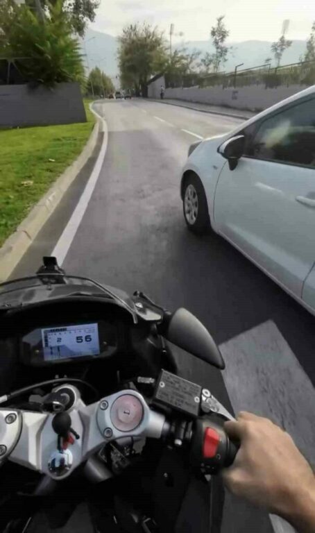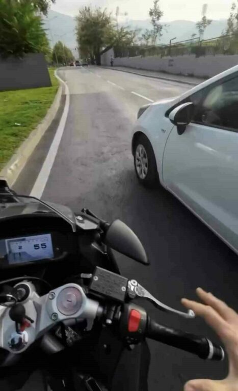 Olay, merkez Yıldırım ilçesi Zafer Mahallesi’nde meydana geldi. Cadde üzerinde seyir halindeki bir motosikletli, kırmızı ışıkta geçerek önüne aniden manevra yapan otomobile korna çalarak tepki gösterdi. Uyarılara aldırış etmeyen otomobil sürücüsü rahat tavırlarıyla dikkat çekerken, sinirlerine hakim olamayan motosikletli aracı takip ederek aynayı kırdı. O anlar kameraya yansırken, motosikletli o anları, “Hak edene, hak ettiğini vereceksin” notuyla paylaştı.