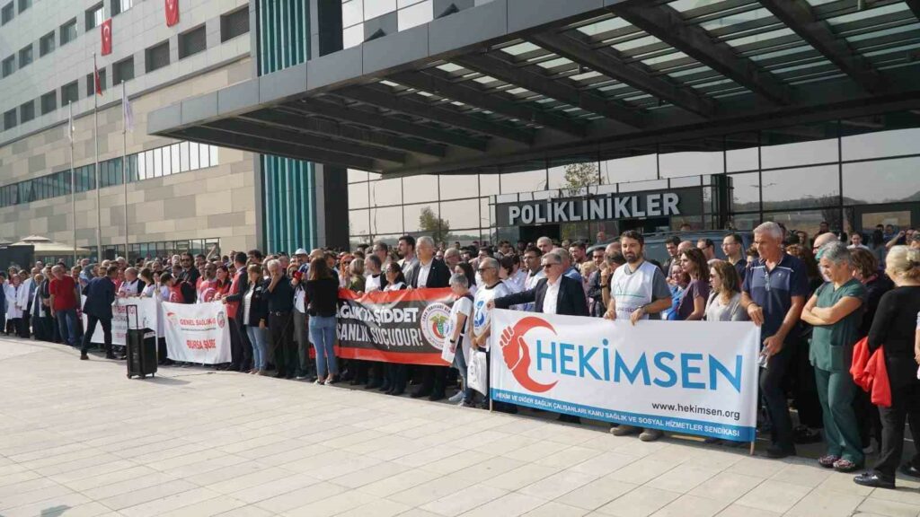 Sağlıkta şiddetin sadece sağlık çalışanlarını değil, hastaları da mağdur ettiğini dile getiren Genel Sağlık İş Bursa Şubesi Yönetim Kurulu Üyesi Tarık Çukadar, “30 Ekim Pazartesi günü Bursa Şehir Hastanesi Polikliniği’ne gelen bir hasta yakını Uzm. Dr. Nihan Alkış’ın odasına girerek aynı branştaki bir kadın hekimi sordu. Alkış, hangi poliklinikte olduğunu bilmiyorum deyince hasta yakını sözlü hakarete başladı. Alkış, ‘şu an hasta muayene ediyorum, dışarıya çıkar mısınız’ diye uyarıda bulununca öfkesi daha da artan hasta yakını şiddetle yüzüne yumruk attı. Kanlar içerisinde yere yığılan hekime hemen müdahale edilmiş, sedyeye konularak aynı hastanenin acil bölümüne götürüldü. Burada ilk tedavisi yapıldıktan sonra 4 ayrı branştan komplikasyon istenmiş, cerrahi servisine yatırıldı. Doktor döven vahşi saldırgan polis tarafından gözaltına alındı” şeklinde konuştu.
